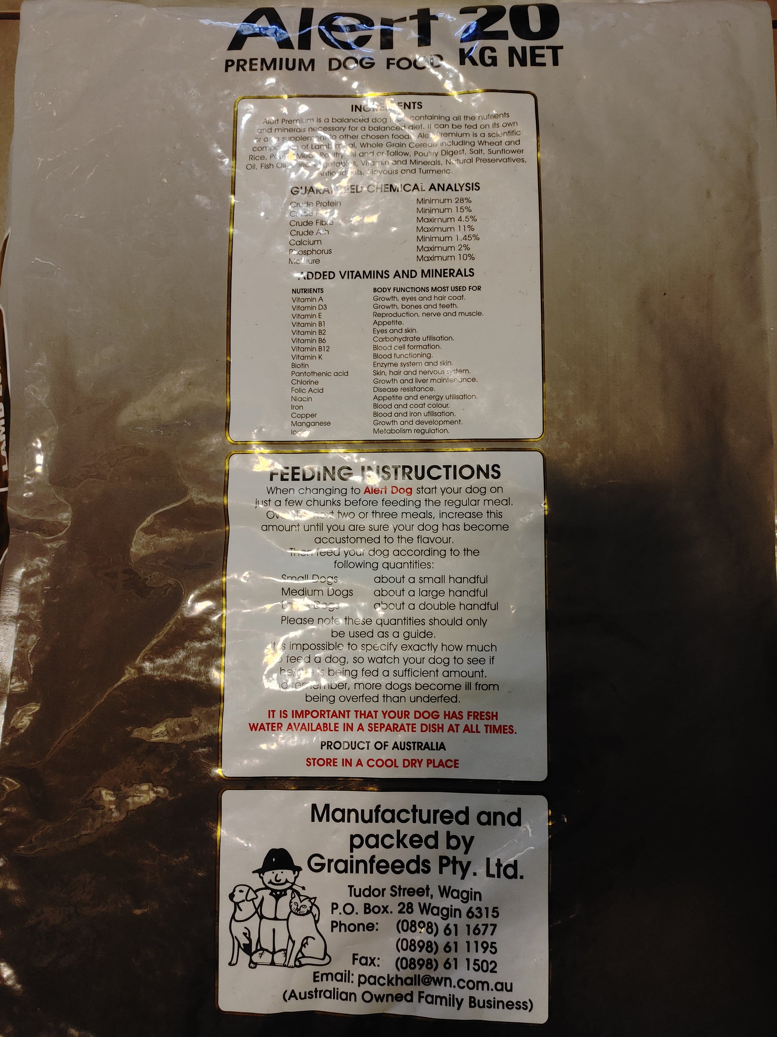 Alert Premium Lamb is proudly made using the finest, locally sourced ingredients from right here in Western Australia. Your pet will receive the best nutrition and quality. the perfect pet food for your beloved companion! Give your dog the gift of a happy, healthy life with Alert Premium Lamb!