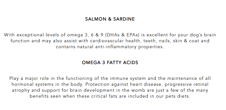 Our Salmon & Sardine holistic formula is the perfect option for improving your pets overall wellbeing. High in Omega 3 fatty acids with no artificial preservatives or colours and using all natural ingredients. We only use pure food with no meat by-products which ensures that your dog is getting exactly what it needs.